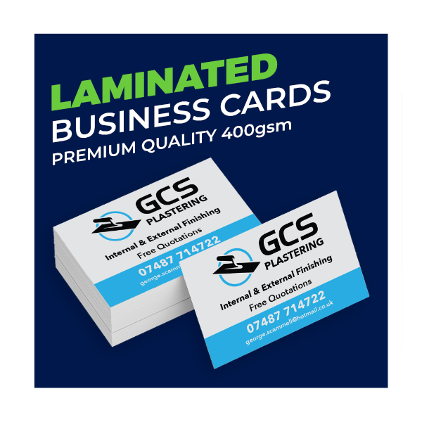 Premium quality 400gsm, laminated business cards with a choice of finish. Choose either gloss or a matt finish to add a touch of luxury to your cards. They can be either single or double sided with a design of your choice. Simply upload your design when ordering.